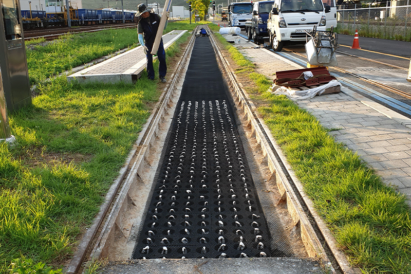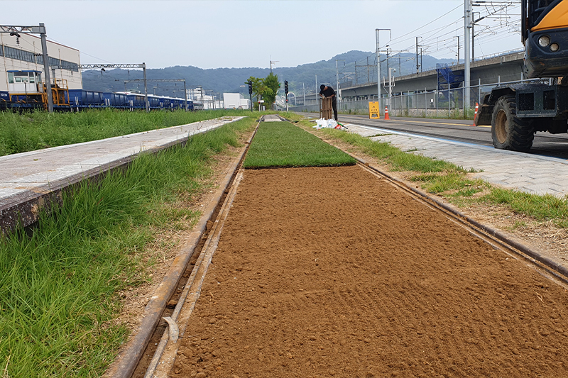 트리폴건설㈜은 트램구간을 위한 잔디식생 기술을 개발하고 다수의 특허를 보유하여 시공에 임하고 있습니다.