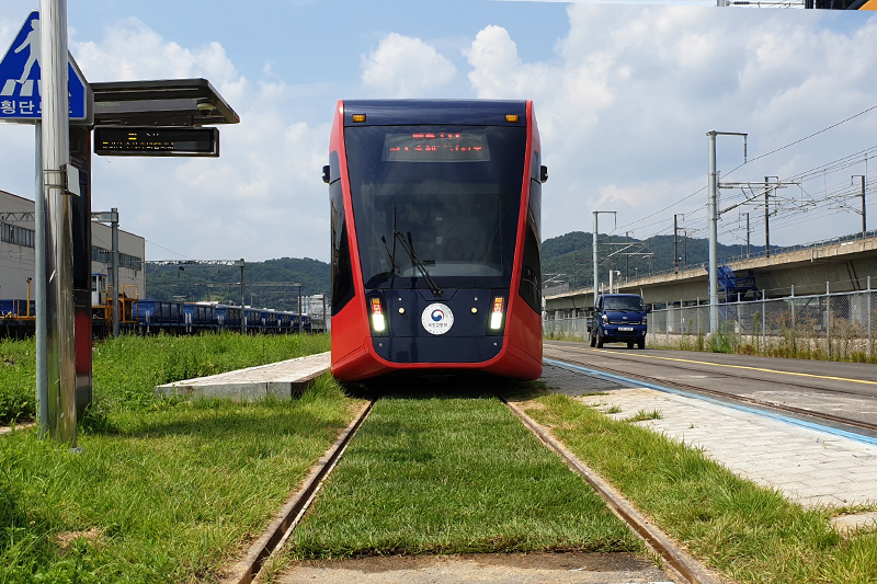 트램은 기존의 돌출된 궤도와 다르게 매립형으로 시공되어 외관이 월등하고 시민의 차량과 보행자의 평행이동이 가능한 장점이 있습니다.